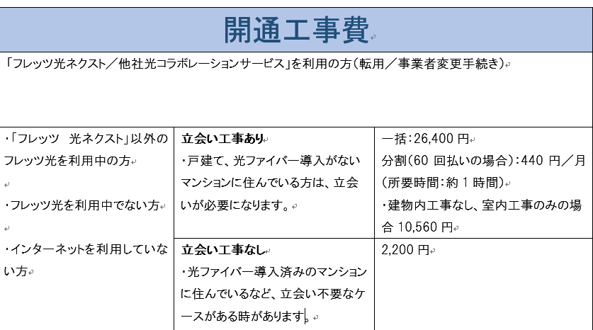 - フレッツ光からの乗り換えならば工事費は必要ない