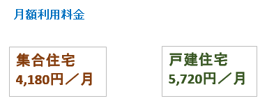 ・月額費用 集合住宅:4,180円/月、戸建住宅:5,720円/月