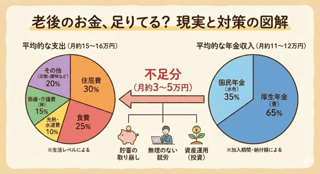 年金だけでは毎月数万円足りない計算になります。